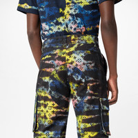 These pants revisit a classic cargo shape, with a nod to the capsule's featured Monogram Tie & Dye motif. The multicolored pattern is printed onto pure cotton denim fabric, with anatomical seam details on the knees and cutting details on the back. Details include tonal metallic buttons and one zipped cargo pocket with a distorted LV puller. Detailed Features - 100% Cotton - Multicolor - Classic Cargo Shape - Model wears a FR 30 size - Model measurements : chest 33.5’’ / 85 cm, height 6'3’’ / 190 cm - Made in Italy