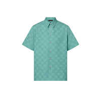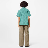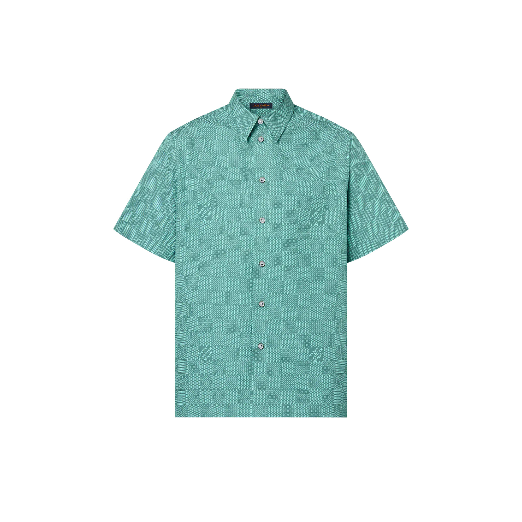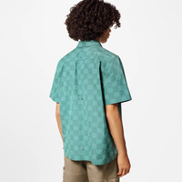 This short-sleeved shirt in light organic cotton is distinguished with an allover Damier Monogram print incorporating micro Monogram details in alternate squares and discreet ‘Marque L.Vuitton Deposee’ signatures. This piece brings a graphic twist to casual ensembles and can also be worn with matching swimshorts for a total look. - Regular Fit - Damier Monogram print allover - Pearl-effect buttons with golden metal finish - Teal - 100% Cotton - Made in France
