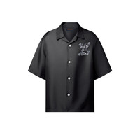 Crafted from fluid black silk, this short-sleeved shirt is a luxurious and versatile piece that can be styled with smart and casual looks. It has an easy open collar for warm weather, while a printed mother-of-pearl effect LV Flower signature adorns the chest. Pair with matching shorts for a chic day-to-evening set. - Relaxed Fit - Black - 100% Silk - Open collar - Mother-of-Pearl effect buttons on fastening - Printed signature on chest - Made in Italy