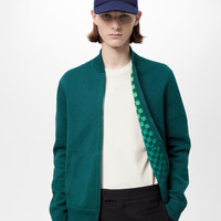 This reversible tracksuit top has a Damier motif in an appealing fade. The certified cotton fabric is made with a tramato technique that involves four different colors in the weave, giving a textured effect to both the patterned and plain presentations of the garment. Additional details include a zip closure with a double puller, kangaroo pockets, and an embroidered LV signature on the pocket of the unpatterned side. Detailed Features - 100% Cotton - Mallard Blue - Regular Fit - Model wears a FR M size - Model measurements : chest 36’’ / 92 cm, height 6' 2½’’ / 189 cm - Made in Italy