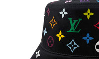 Elevate your headwear with the Louis Vuitton Reversible Superflat Bucket Hat "Takashi Murakami Multicolore Noir." This luxurious piece, a vibrant collaboration celebrating Murakami's artistry, features his distinctive motifs on one side and a solid color on the reverse. Experience versatile style and a sophisticated aesthetic, perfect for making a bold statement.