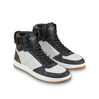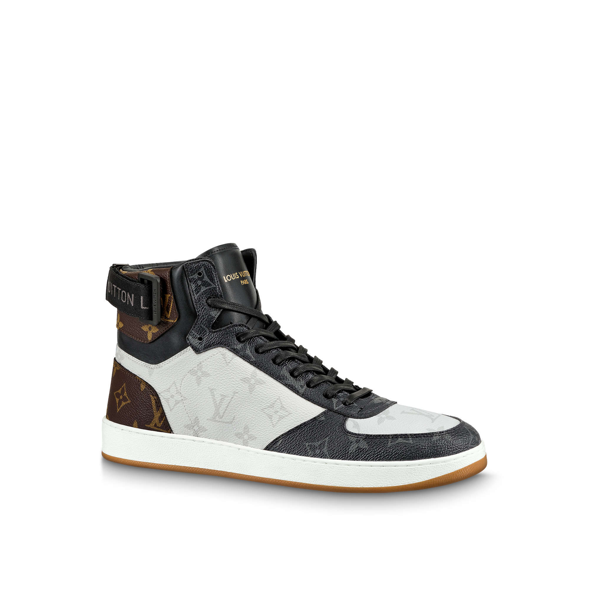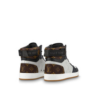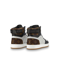 The Rivoli sneaker boot is a distinctive high-top style crafted from three different versions of iconic Monogram canvas. The Louis Vuitton signature is embossed in gold on the tongue and also features on the functional velcro strap, which can be worn on either the front or the back of the shoe. Detailed Features - Monogram canvas - Louis Vuitton signature on the velcro strap - Rubber outsole - Made in Italy