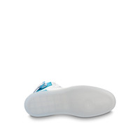 This version of the Rivoli sneaker boot comes in supple, grained calf leather embossed with Louis Vuitton's iconic Monogram pattern. This classic hi-top is enhanced by refined detailing, including metallic calf leather trim. The signed velcro strap, which allows for easy fitting, can be worn at the front or back. Detailed Features - Blue - Monogram-embossed grained calf leather and metallic calf leather - Removable anatomic insole - Rubber outsole - LV Initials on the tongue - Louis Vuitton signature on the strap - Made in Italy