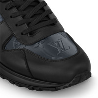 Inspired by classic running shoes, the Run Away sneaker is one of Louis Vuitton's most emblematic styles. This version comes in iridescent textile with the Monogram pattern, complemented by calf-leather trim. This lightweight, exceptionally comfortable model is characterized by its technical rubber outsole with hand-finished details. - Black - Iridescent textile and calf leather - Hand-finished technical rubber outsole - Louis Vuitton signature on the tongue and back - Made in Italy