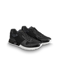 Louis Vuitton's iconic Run Away sneaker comes in a monochrome combination of Monogram canvas, calf leather and textile. This model, which was inspired by classic running shoes, features a technical rubber outsole with hand-crafted leather trim. The LV Initials logo is embroidered on the side. Detailed Features - Monogram canvas, calf leather and textile - Black - Rubber outsole - Louis Vuitton label on the tongue - Made in Italy