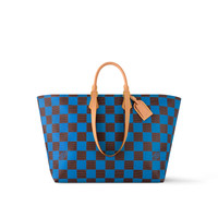The Sac Plat Soft tote bag features a supple shape with a colorful new version of the Damier print, introduced by Creative Director Pharrell Williams this season. The zip opening ensures convenient access, while keeping belongings secure. The long- and short-handle options mean it can be carried by hand or on the shoulder. Length: 27.6 inches Height: 13.8 inches Width: 9.8 inches - Blue - Damier Pop coated canvas - Natural cowhide-leather trim - Textile lining - Gold-color hardware - Zip closure - Removable name tag - Inside zipped pocket - Double inside flat pocket - Handle:Double This reference is either Made in France, Spain, Italy or in the US.