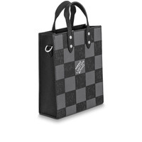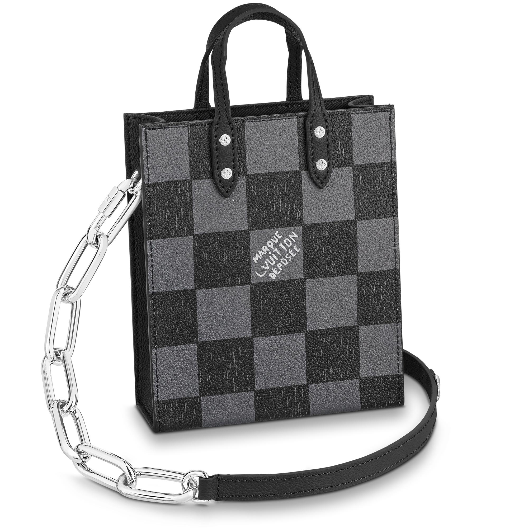 Inspired by the Sac Plat from the House archives, Virgil Abloh created the Sac Plat XS bag for men with softer lines and a smaller size. Fashioned from cowhide leather, it features a Damier checkerboard pattern with the darker squares having a hand-drawn aspect. It has both top handles and an adjustable and removable strap. Detailed Features - Graphite - Cowhide leather - Textile lining - Cowhide-leather trim - Silver-color hardware - Main compartment - Strap:Removable, adjustable - Strap drop: 13.8 inches - Strap drop max: 18.1 inches - Handle:Double - This reference is either Made in France, Spain, Italy or in the US. Length: 6.3 inches Height: 7.7 inches Width: 2.2 inches