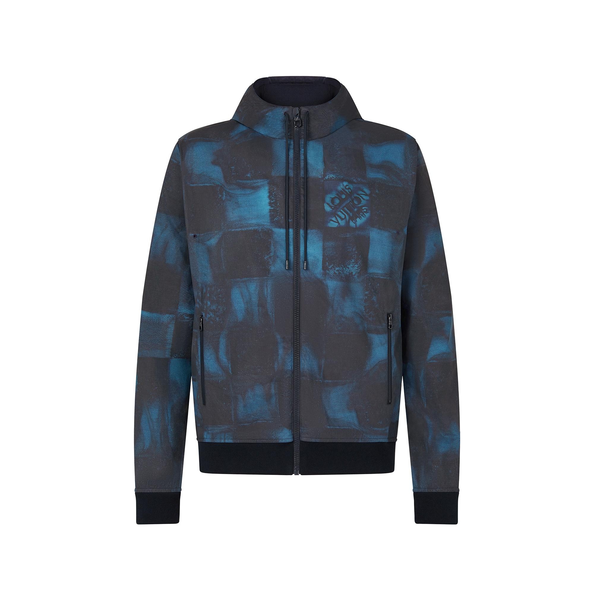 Cut in a regular fit, this blouson showcases the season's Salt Print: a new take on the iconic Damier pattern. The design reproduces the effect of ink spreading through the water-repellent fabric. Signed with an LV logo on the chest, the piece features knitted ribs and a plain lining in lightweight cotton. Detailed Features - 100% Modal - Midnight Blue - Regular Fit - Model measurements : chest 34’’ / 86.5 cm, height 6'1.5’’ / 186 cm - Model wears a FR M size - Made in Italy