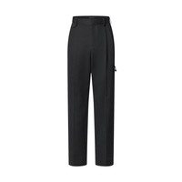 These cotton chino pants have a casual yet elegant silhouette with a pleated front, with flap and patch pockets adding a workwear twist. Applied signatures add a preppy accent, with an elegant embroidered Louis Vuitton in a cursive script on the left leg, while a rhinestone-embellished LV patch signs the back. The black color makes this a versatile piece for completing everyday looks. - Regular fit - Black - 100% Cotton - 2 front pleats - 2 Italian pockets - 1 flap pocket detail on waist - 2 patch pockets back - 1 piped pocket on right leg - 1 flap pocket on left leg - Embroidered signature on flap pocket left leg - Rhinestone signature patch on rear pocket - Made in Italy