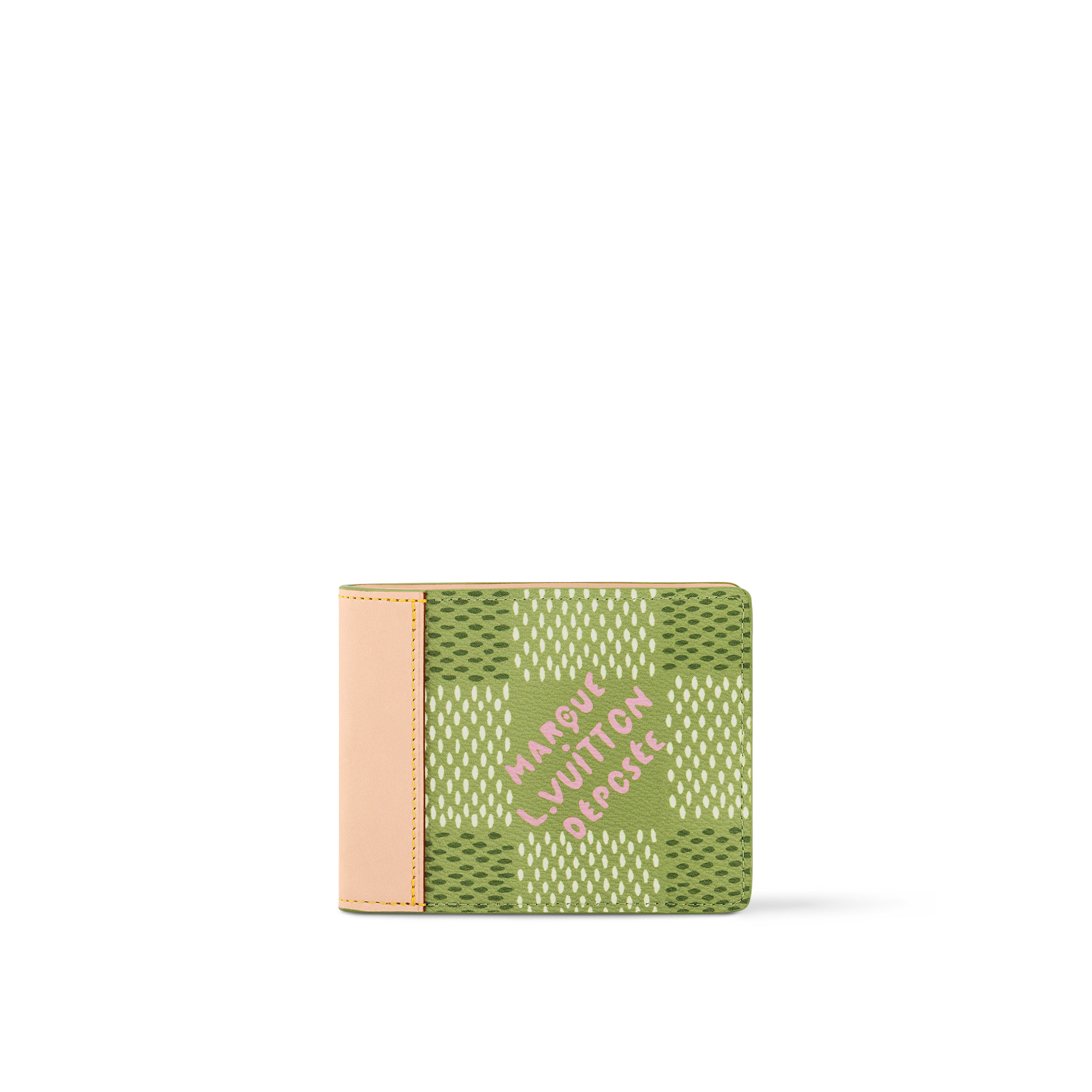 The Slender Wallet is made from Damier Golf coated canvas with natural cowhide-leather trim, as part of the House’s collaboration with Tyler. The greens of the checkerboard pattern are perfectly complemented by the “L.Vuitton Marque Deposee” in pink. The Slender features eight card slots in addition to its bill compartment. Length: 4.3 inches Height: 3.3 inches Width: 0.8 inches - Green - Damier Golf coated canvas - Cowhide-leather lining - 8 card slots - Bill compartment This reference is either Made in France, Spain, Italy or in the US.