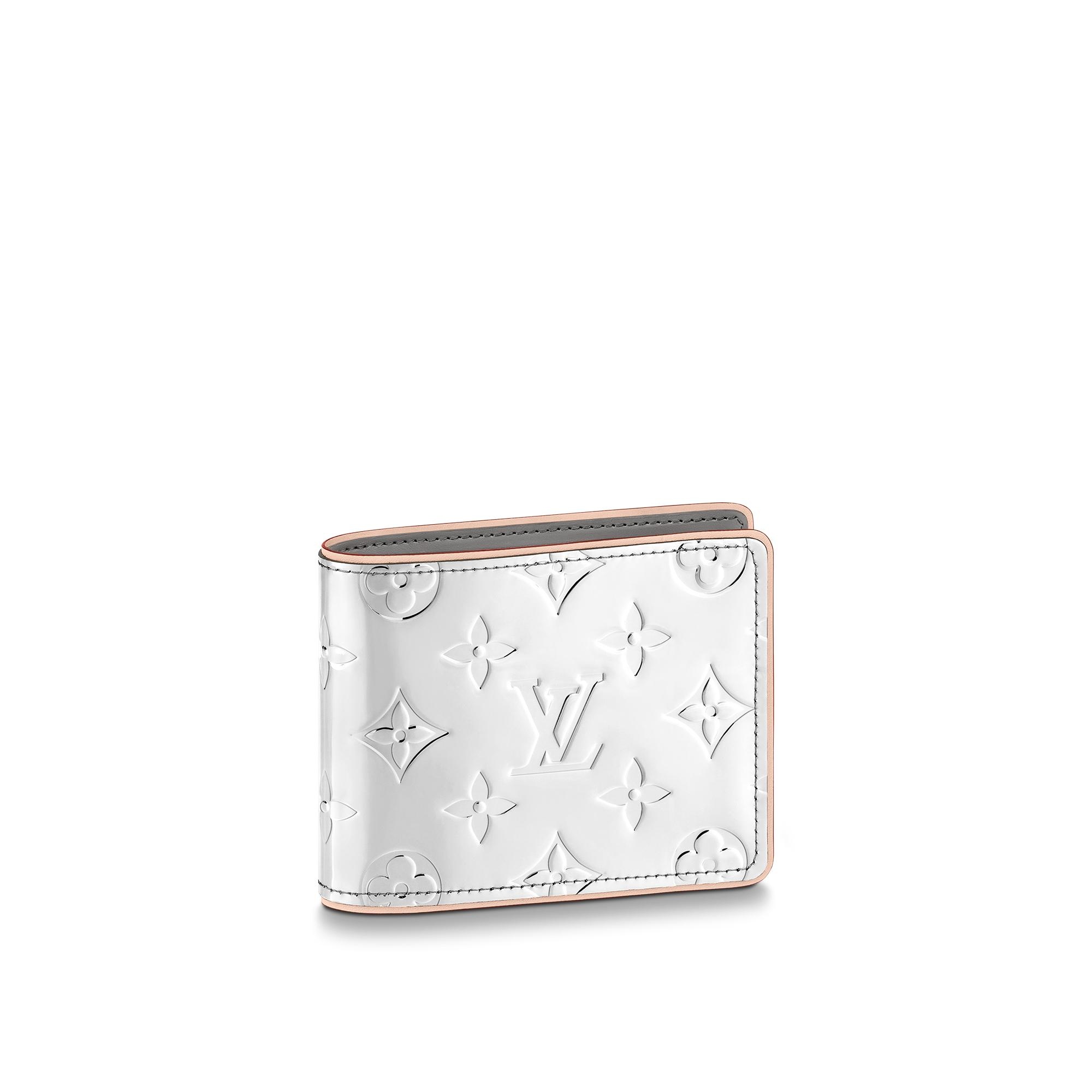 Part of the LV Mirror Mirror capsule introduced for the Fall-Winter 2021-22 Collection, the Slender Wallet is made from the shiny Monogram Mirror canvas with debossed Monogram Flowers and LVs. Thin enough to fit comfortably into most pockets, it has multiple slots and compartments to hold bills and cards. Detailed Features - Monogram Mirror coated canvas - Natural Cowhide leather trim - Textile lining - 8 card slots - Bill compartment - This reference is either Made in France, Spain, Italy or in the US. Length: 4.3 inches Height: 3.3 inches Width: 0.8 inches