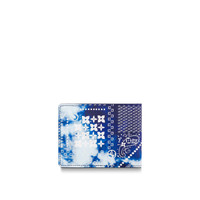 The classic Slender Wallet takes on a new aspect in supple leather with an irregular bleached motif of LVs and Monogram Flowers on a blue bandana background. The Slender’s ingenious interior can hold all the essentials while keeping a sleek profile that’s easy to slip into most pockets. Detailed Features - Blue - Cowhide leather - Textile lining - Cowhide-leather trim - Silver-color hardware - 8 card slots - Bill compartment - This reference is either Made in France, Spain, Italy or in the US. Length: 4.3 inches Height: 3.3 inches Width: 0.8 inches