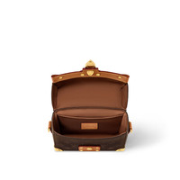 Monogram Dust canvas, with its weathered look, brings rustic charm to the Soul Trunk cross-body bag. The patina on the leather and hardware perfectly complements the faded Monogram Flowers and LVs. This compact bag from Pharrell Williams boasts all the codes of the Soul Trunk family: reinforced corners, stitching, leather details, and the tumbler lock. Length: 7.5 inches Height: 5.9 inches Width: 2.8 inches - Monogram Dust coated canvas - Aged cowhide-leather trim - Textile lining - Gold-toned hardware - Flap main compartment with signature magnetic lock - Inside flat pocket - Back zipped pocket - Key charm - Strap:Removable, adjustable - Strap drop:18.9 inches - Strap drop max:21.3 inches - Handle:Single This reference is either Made in France, Spain, Italy or in the US.