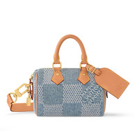 A compact version of the House’s celebrated Speedy travel bag introduced in 1930, the Speedy 18 Bandouliere exudes summer cool in Damier Denim 3D cotton canvas. This denim remake of the emblematic checkerboard pattern is perfectly complemented by the natural cowhide-leather top handles. The removable and adjustable strap enables cross-body wear. Length: 7.1 inches Height: 4.7 inches Width: 3.9 inches - Blue - Damier Denim 3D cotton canvas - Cowhide-leather trim - Textile lining - Gold-color hardware - Zip closure - Name tag - Padlock - Strap:Removable, adjustable - Strap drop:18.9 inches - Strap drop max:24.4 inches - Handle:Double This reference is either Made in France, Spain, Italy or in the US.