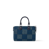 Pharrell Williams brings an up-to-the-minute feel to the Speedy 25 Bandouliere bag with his new Damier Heritage coated canvas. The retro aspect of the checkerboard squares and use of the “Marque L.Vuitton Deposee” signature evoke the House’s early travel bags. Two top handles and a detachable and adjustable strap enable different carries. Length: 9.8 inches Height: 5.9 inches Width: 5.9 inches - Blue - Damier Heritage coated canvas - Cowhide-leather trim - Textile lining - Silver-color hardware - Zip closure - Main compartment with lock closure - Inside flat pocket - Removable name tag - Strap:Removable, adjustable - Strap drop:21.7 inches - Strap drop max:24.8 inches - Handle:Double This reference is either Made in France, Spain, Italy or in the US.
