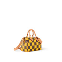This Speedy 25 Bandouliere Damier Pop displays the same trapezoid lines as the classic Speedy but made from supple Damier Pop coated canvas, the bottom of the bag drapes casually. The new colorway brings a touch of playfulness while the natural cowhide-leather trim and polished gold-color hardware pay homage to the House’s classic bags. Length: 9.8 inches Height: 5.9 inches Width: 5.9 inches - Yellow - Damier Pop coated canvas - Natural cowhide-leather trim - Textile lining - Gold-color hardware - Zip closure - Main compartment with lock closure - Inside flat pocket - Name tag - Strap:Removable, adjustable - Strap drop:21.7 inches - Strap drop max:24.8 inches - Handle:Double This reference is either Made in France, Spain, Italy or in the US.