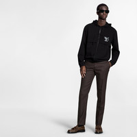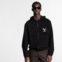 This classic zip-though hoodie spotlights the LV2 logo from this season’s collaboration with the Japanese designer Nigo. Defined by Virgil Abloh as “the acknowledgment that one idea can coexist with another”, the motif features as a concise logo on the chest and a full signature across the back, reproduced in reflective lettering. The piece is tailored in a regular fit from technical jersey fabric. Detailed Features - 86% Polyamide, 14% Elastane - Black - Regular Fit - Model wears a FR M size - Model measurements : chest 32’’ / 81 cm, height 6' 1½’’ / 187 cm - Made in Italy