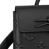 The Steamer XS bag is a tiny version of the House’s Steamer bag. It’s made from leather with a debossed Monogram pattern and features a neon-orange chain on its chain-and-pin closure. It can be carried by hand thanks to its top handle or worn on the shoulder with the detachable strap. Detailed Features - Black cowhide leather - Cowhide leather trim - Textile lining - Black mat color hardware with orange chain - Flap magnetic closing system - Flat pocket - Removable and non-adjustable shoulder strap - Strap:Not removable, adjustable - Strap drop: 18.1 inches - Strap drop max: 19.7 inches - Handle:Single - This reference is either Made in France, Spain, Italy or in the US. Length: 5.9 inches Height: 7.1 inches Width: 3 inches