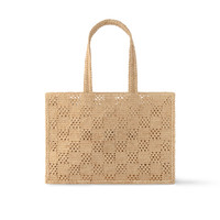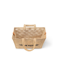 This dazzling Summer Shopper Tote is the perfect beach companion. Hand-woven from natural raffia, the shell of each tote takes about 70 hours to make. The subtle Damier checkboard is paired with a hand-made black-raffia “Louis Vuitton” signature. This practical bag has a leather bottom for a structured look and an inside detachable pouch. Length: 17.3 inches Height: 12.6 inches Width: 6.7 inches - Natural Beige - Damier Raffia - Cowhide-leather trim - Gold-color hardware - Removable leather pouch attached with a snap hook - Main compartment - Removable name tag - Handle:Double This reference is either Made in France, Spain, Italy or in the US.