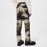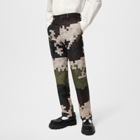 These graphic tailored pants are embellished with the SS24 Show’s iconic Damoflage motif, woven into a lustrous cotton jacquard. Blending urban refinement with camouflage references, they embody this collection’s spirit of adventure and elegance. They can be paired with a matching jacket for a bold runway look. - Cigarette Fit - Allover Damoflage jacquard - ‘Marque L. Vuitton deposee’ signatures integrated in motif - Two side pockets - Two piped pockets at the back - Khaki Camouflage - 99% Cotton, 1% Polyester - Made in Italy