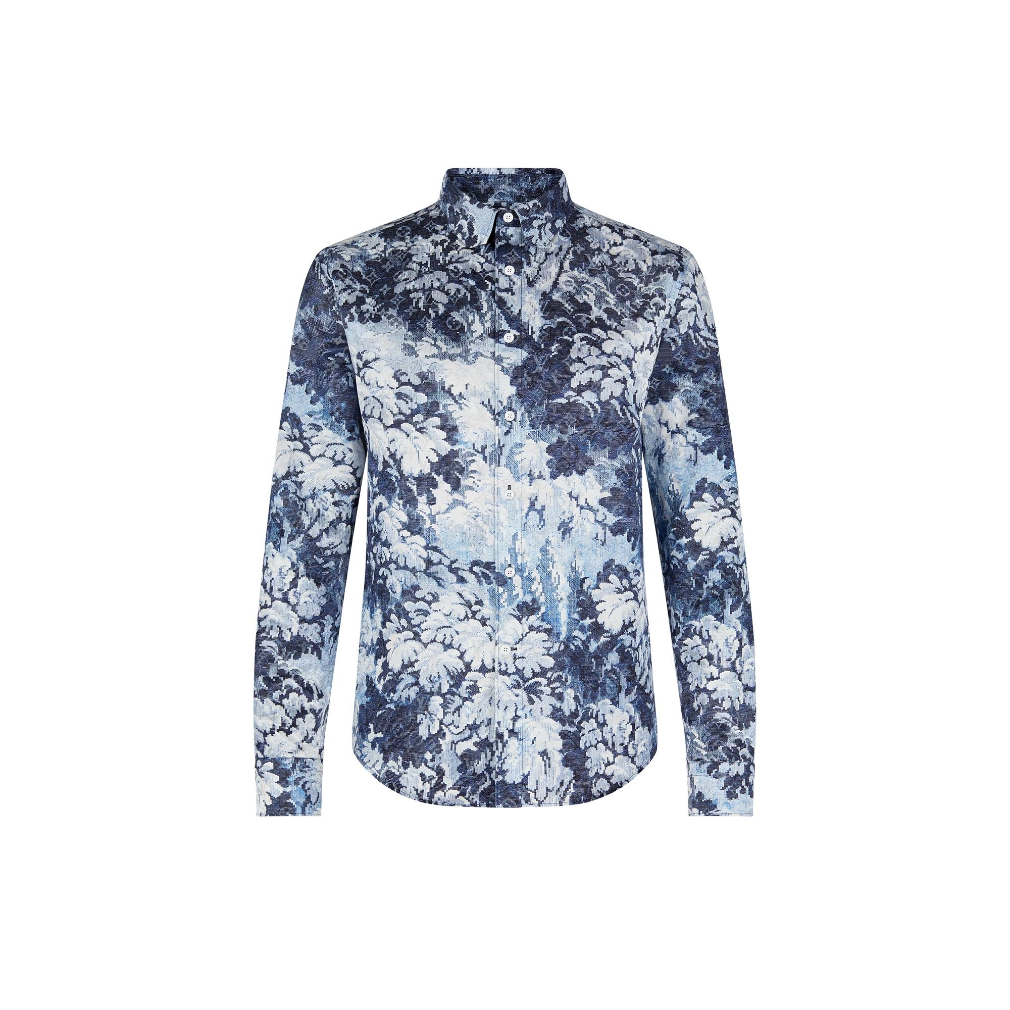 Tailored in a regular fit, this shirt combines the season's antique-influenced Monogram Tapestry print with a clean, contemporary shape. The design is featured as an all-over print, on a superfine silk and cotton blend fabric. Details include the House's signature clipped collar tips, and black metallic buttons. Detailed Features - 60% Cotton, 40% Silk - Blue - Regular Fit - Model wears a FR M size - Model measurements : chest 36’’ / 92 cm, height 6’1’’ / 185 cm - Made in Italy
