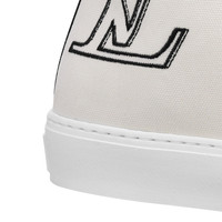 The Tattoo sneaker boot is embellished with a colorful Monogram-canvas patch appliquéd with zigzag stitching on the canvas upper. The other key feature of this design are the oversized LV Initials embroidered on the side. This classic hi-top is finished with white laces and a white rubber toe cap and outsole. Detailed Features - White - Textile and Monogram canvas - Rubber outsole - LV Initials embroidered on the side - Made in Italy