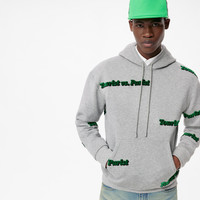This piece plays the collection’s Tourist vs. Purist message on a classic casual shape. The hoodie is tailored in a regular fit from brushed-back felpa, and decorated with tuffetage embroidery. Details include double fabric construction, a kangaroo pocket and ribbing at the cuffs and waist. Detailed Features - 100% Cotton - Grey - Regular Fit - Model wears a FR M size - Model measurements : chest 33.5’’ / 85 cm, height 6'3’’ / 190 cm - Made in Italy
