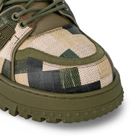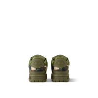 This version of the LV Trainer Maxi sneaker comes in calf leather printed with the Damoflage motif, which reinterprets the Damier pattern as camouflage. The motif was a key feature of Men's Creative Director Pharrell Williams' Spring-Summer 2024 show. This model features an oversized fit and a chunky rubber outsole, inspired by that of the cult LV Trainer sneaker. - Khaki Green - Calf leather - Technical laces with stopper - Rubber outsole - LV Initials on the tongue, side and back - Vuitton signature on the side - Monogram Flowers on the outsole - Made in Italy