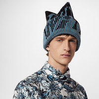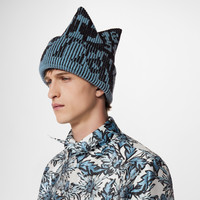 A distinctive shape and exaggerated details make the Tricorn Rib Flower Beanie an eye-catching statement piece. This hat creates a striking silhouette with its unique three-pointed structure and oversized turned-up cuff. The LV Comics motif featured throughout adds a modern twist to its rebellious design. Detailed Features - Citadel Blue - Wool - LV Comics Length: 9.8 inches Height: 9.8 inches