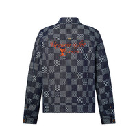 This denim jacket features the Damier Distorted signature realized in a blue shaded jacquard. It celebrates the festival "Something in the Water" created by Pharrell Williams that occurs in Virginia. A red embroidery on the back "Virginia is for Lovers" adds a trendy twist to this classic piece that is perfect for the upcoming summery days. Detailed Features - 100% Cotton - Blue - Regular Fit - Made in France