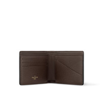 At first glance, this Multiple Wallet appears to be made from a colorful variation of the classic Monogram, but closer inspection reveals an irregular treatment of the Monogram Blossoms and LVs. What’s more, there are daisies and terrier dogs included in the pattern. This is Monogram Craggy canvas and it looks great on this practical wallet. Length: 4.5 inches Height: 3.5 inches Width: 0.6 inches - Chocolate - Monogram Craggy coated canvas - Cowhide-leather trim - 3 card slots - 2 inside pockets - 2 compartments for bills and tickets - 2 side slots for receipts This reference is either Made in France, Spain, Italy or in the US.