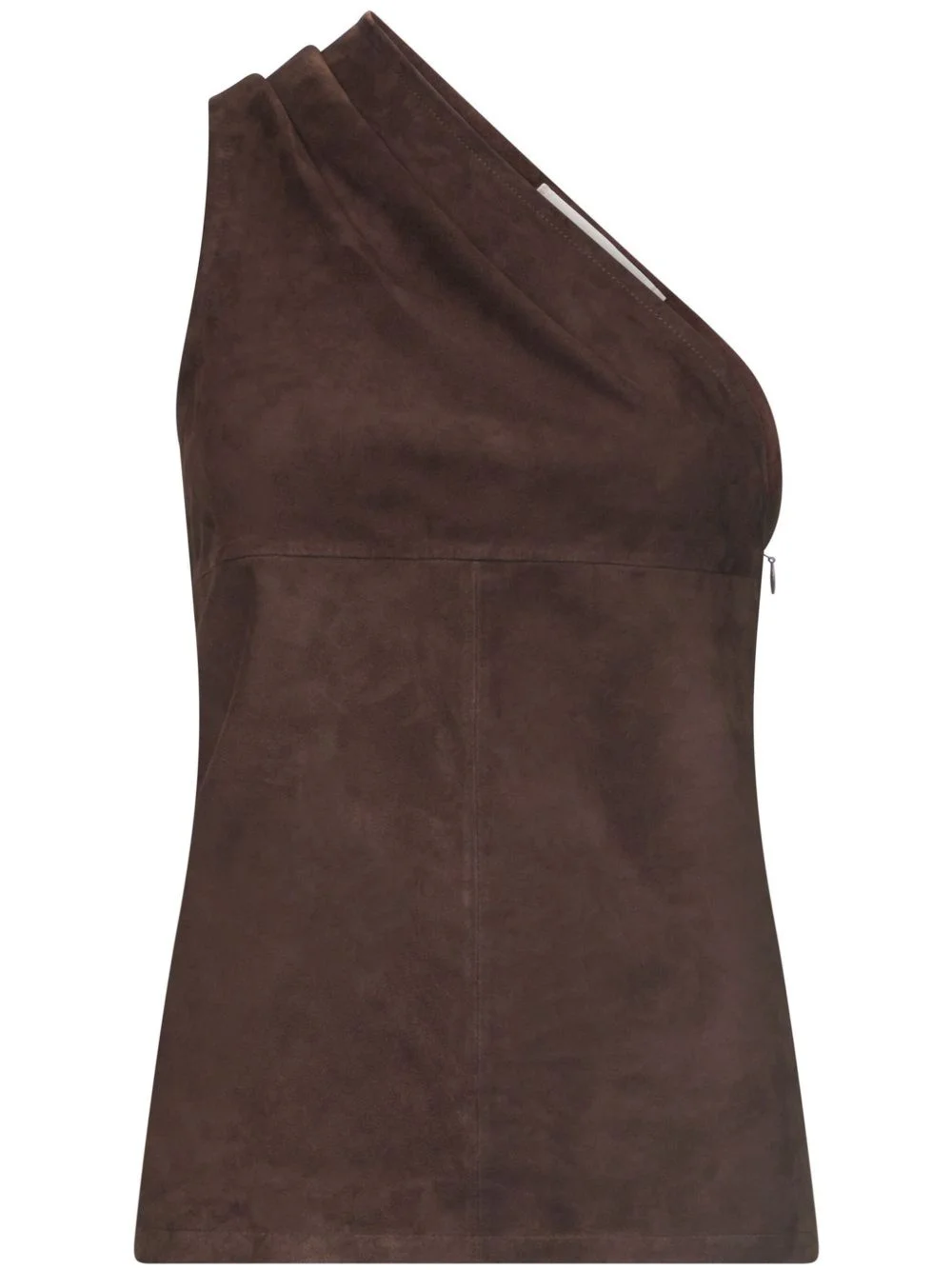 Jay leather top Highlights - Brown - Side zip fastening - Asymmetric neck - Sleeveless - When buying this unisex item, keep in mind that it is graded in standard men's sizing. Imported Composition Calf Suede 100%