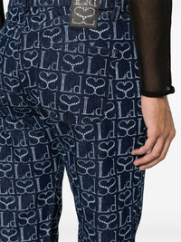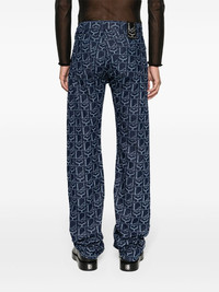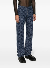 monogram-print straight-leg trousers Highlights - Indigo blue - Cotton - Monogram print - Swarovski crystal embellishment - Front lace-up fastening - Eyelet embellishment - Low-rise - Slip pockets to the sides - Logo patch to the rear - When buying this unisex item, keep in mind that it is graded in standard men's sizing. Imported Composition Cotton 100% SIZE & FIT Model measurements Height 5 ft 10 in(1.78 m) Bust/Chest 31.49 in(80 cm) Hips 37 in(94 cm) Waist 23.62 in(60 cm)