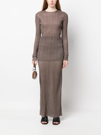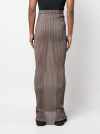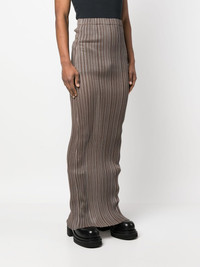 striped maxi skirt Blurring the lines of gender, French designer Ludovic De Saint Sernin offers this maxi skirt for SS23. Boasting a figure-hugging column silhouette, it's decorated with a vertical striped motif in tonal brown hues. Highlights - Brown - Semi-sheer construction - Vertical stripe print - High-waisted - Elasticated waistband - Maxi - When buying this unisex item, keep in mind that it is graded in standard men's sizing. Made in France Composition Polyester 100% SIZE & FIT Model measurements Height 5 ft 8 in(1.73 m) Bust/Chest 33.07 in(84 cm) Hips 35.03 in(89 cm) Waist 24.8 in(63 cm) FittingInformation This piece is unisex and is designed for a close fit over the leg whether you usually select women's or men's sizes The elasticated waist allows for a comfortable fit The pleated construction on this piece allows for additional movement and flexibility in the fit Washing instructions Dry Clean Only