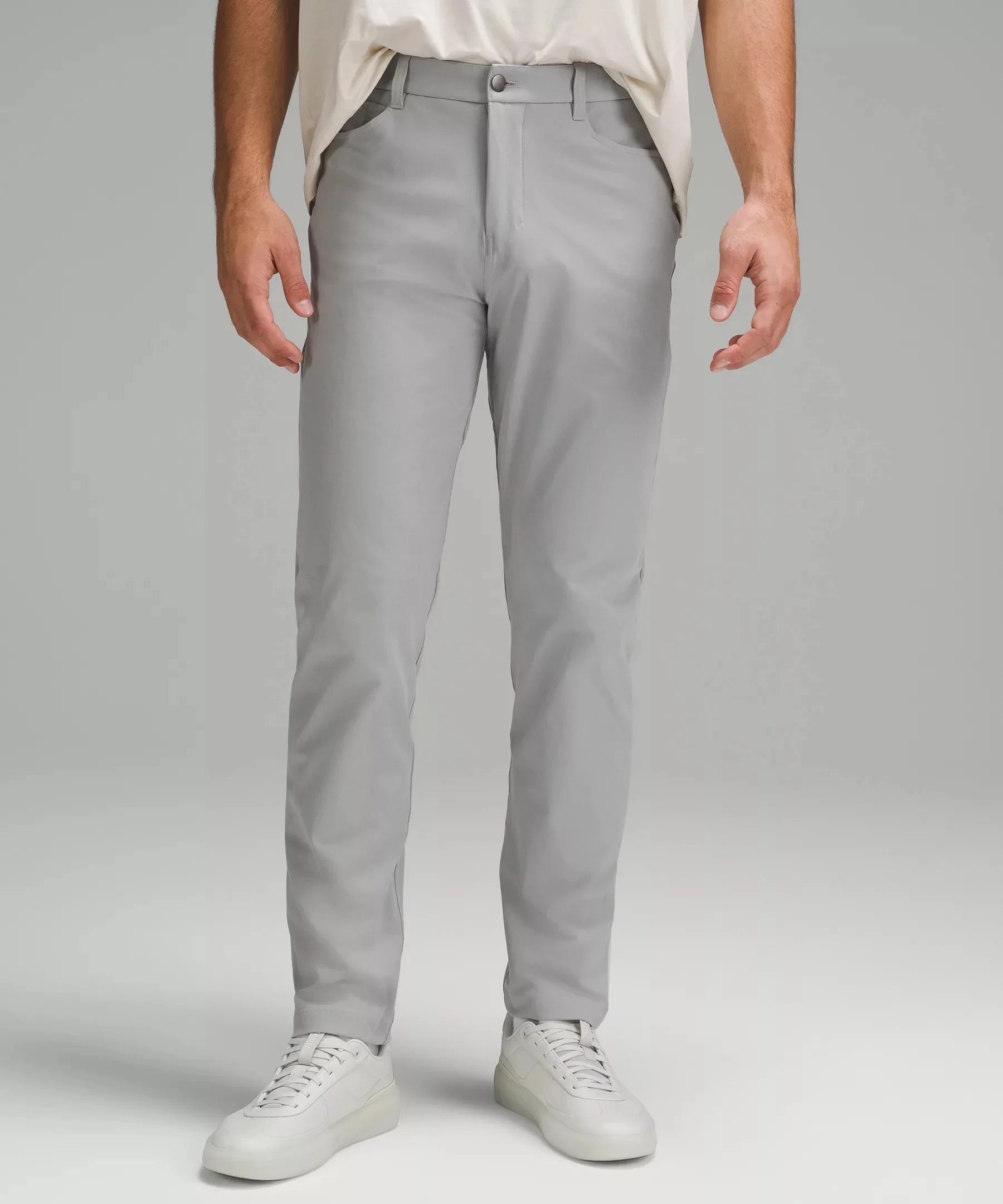 Everyday Performance, Warpstreme™ Fabric Everyday performance Shape retention Quick-drying Four-way stretch Breathable Wrinkle-resistant Feels smooth, falls softly away from body This product contains recycled polyester made from repurposed plastic waste Classic Fit, 30" Length Streamlined fit that gives glutes and thighs breathing room Our ABC™ (Anti-Ball-Crushing) technology uses an ergonomic gusset to remove tension from the crotch of our pants so you can move in comfort Product Features Hand pockets, a phone pocket, and an internal sleeve to stash coins Back pocket with hidden zippered compartment Flip up the cuffs to reveal reflective details Material and care Materials Pocket lining: 100% Recycled polyester Body: 53% Elastomultiester47% Recycled polyester Care Wash with like colours Machine wash cold Do not bleach Tumble dry low Do not iron Do not dry clean