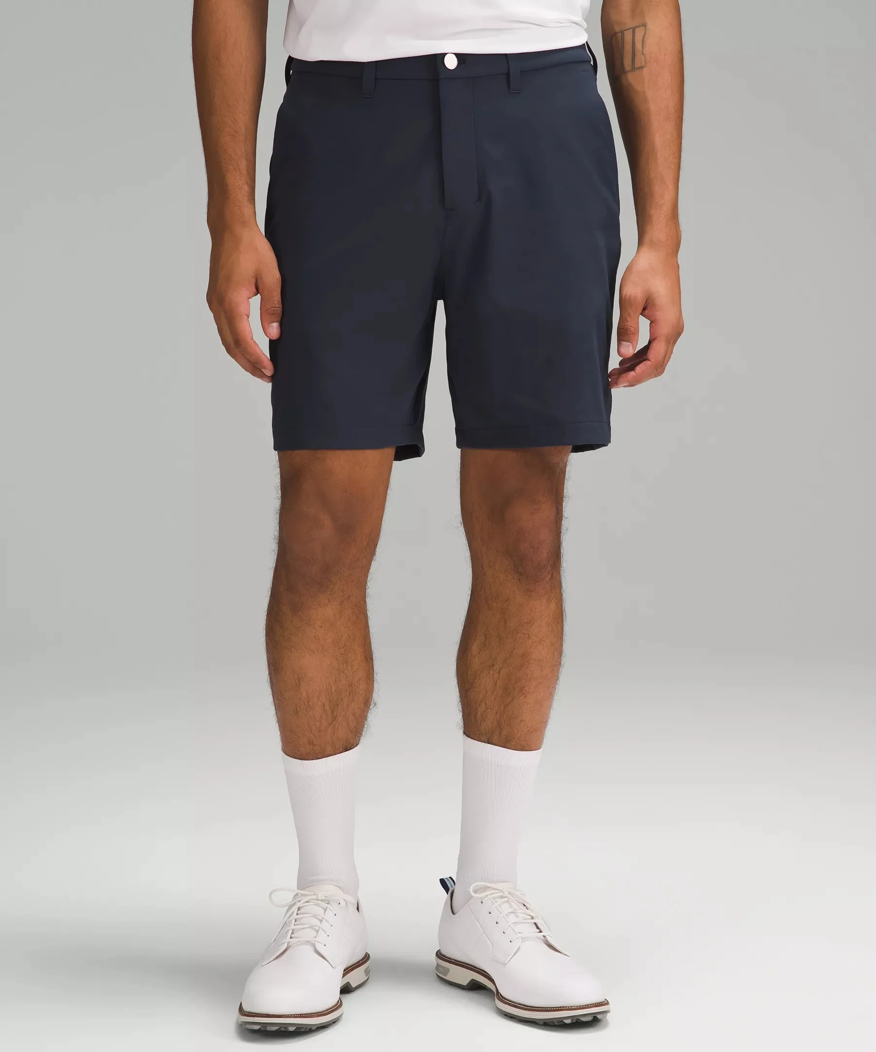 Water-Resistant, Stretch Fabric Water-resistant Abrasion-resistant UV protective UPF 40+ provides very good UV protection to only covered areas. This item’s protection may be reduced with use, or if it gets stretched or wet. Sun exposure causes skin damage Classic Fit, 7" Length Streamlined fit that gives glutes and thighs breathing room Product Features Stretch elastic panels on the waistband Front pockets; one with a hidden phone sleeve Small drop-in pocket on the right-hand side for golf tees Back pockets with snap closures fit a phone and score cards Material and care Materials Pockets: 100% Recycled polyester Body: 95% Nylon5% Elastane Care Wash with like colours Machine wash cold Do not bleach Tumble dry low Do not iron Do not dry clean Imported