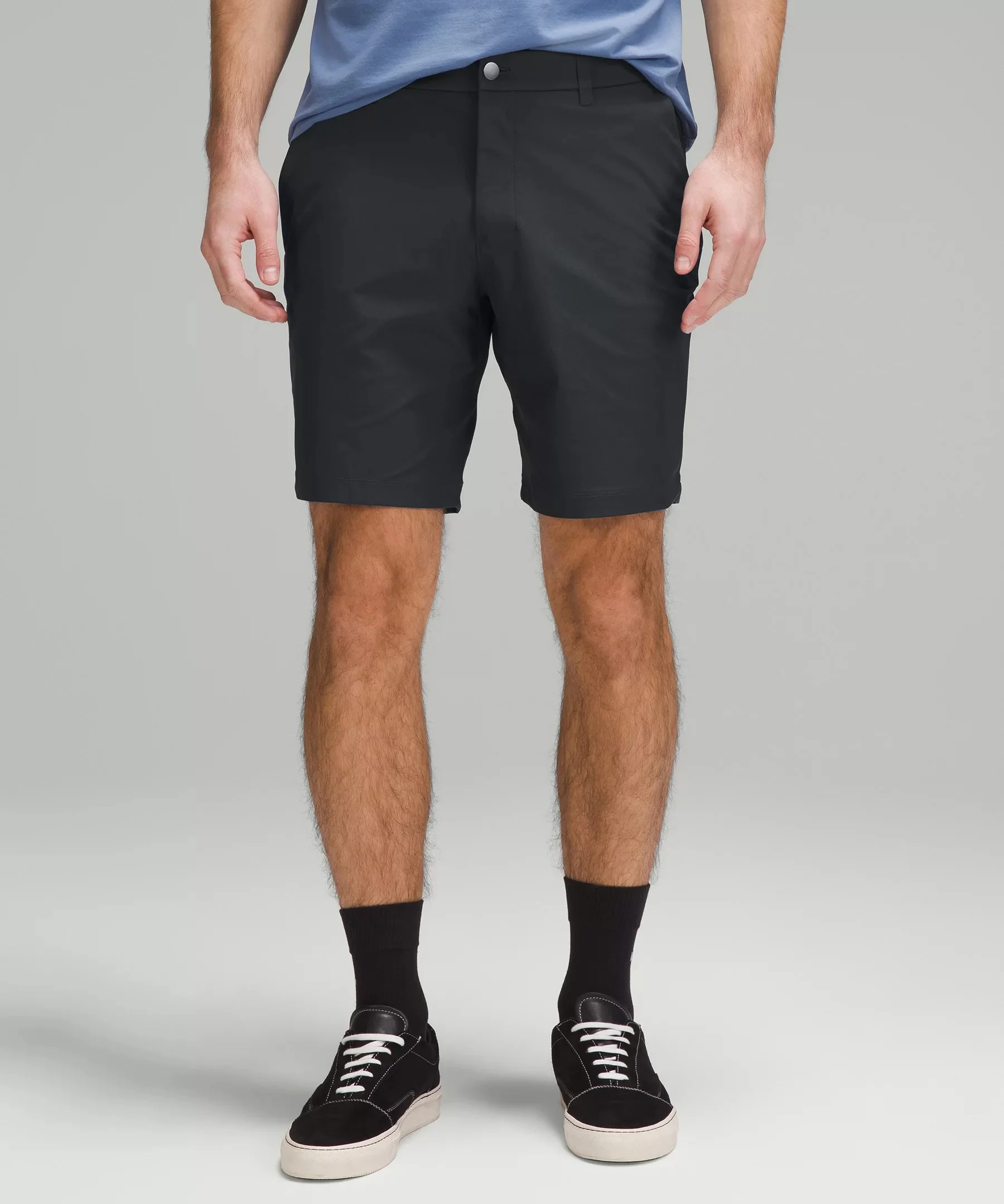 Everyday Performance, Warpstreme™ Fabric Everyday performance Shape retention Quick-drying Four-way stretch Sweat-wicking Wrinkle-resistant Feels smooth, falls softly away from body Classic Fit, 9" Length Streamlined fit that gives glutes and thighs breathing room Our ABC™ technology uses an ergonomic gusset to remove tension from the crotch of our pants Product Features Front pockets with hidden phone and coin sleeves Discreet zippered seam pocket Material and care Materials Pocket lining: 100% Recycled polyester Body: 54% Recycled polyester46% Elastomultiester Care Wash with like colours Machine wash cold Do not bleach Tumble dry low Do not iron Do not dry clean Imported