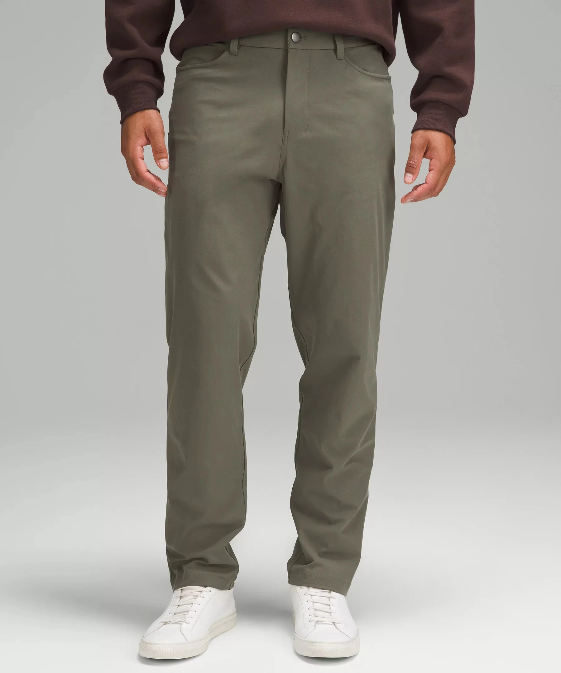Everyday Performance, Warpstreme™ Fabric Everyday performance Shape retention Quick-drying Four-way stretch Breathable Wrinkle-resistant Feels smooth, falls softly away from body This product contains recycled polyester made from repurposed plastic waste Relaxed-Tapered Fit, 32" Length Roomy fit through glutes and thighs, then tapers to hem Our ABC™ technology uses an ergonomic gusset to remove tension from the crotch of our pants Product Features Hand pockets, a phone pocket, and an internal sleeve to stash coins Back pocket with hidden zippered compartment Flip up the cuffs to reveal reflective details Material and care Materials Pocket lining: 100% Recycled polyester Body: 53% Elastomultiester47% Recycled polyester Care Wash with like colours Machine wash cold Do not bleach Tumble dry low Do not iron Do not dry clean Imported