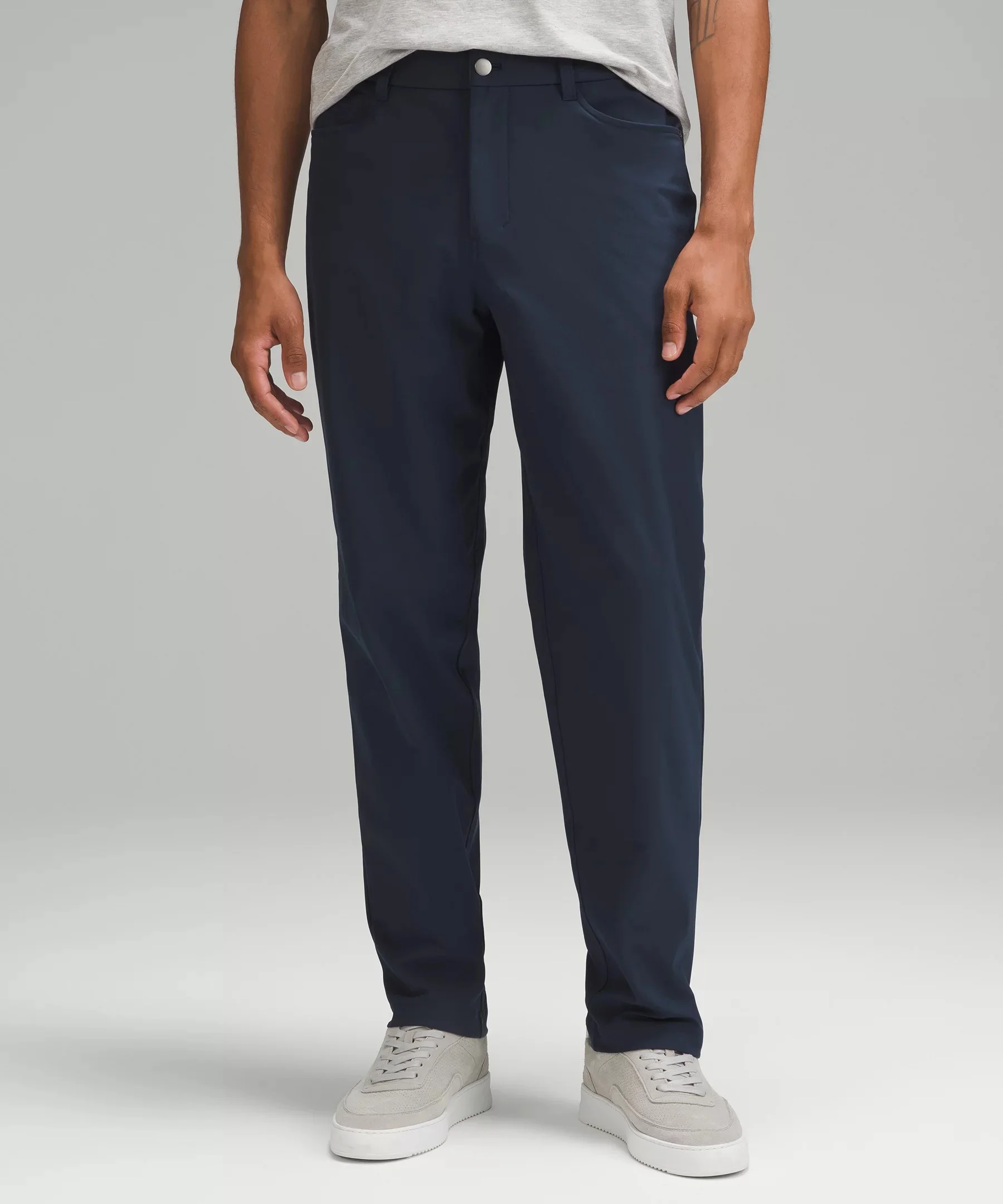 Everyday Performance, Warpstreme™ Fabric Everyday performance Shape retention Quick-drying Four-way stretch Breathable Wrinkle-resistant Feels smooth, falls softly away from body This product contains recycled polyester made from repurposed plastic waste Relaxed-Tapered Fit, 32" Length Roomy fit through glutes and thighs, then tapers to hem Our ABC™ technology uses an ergonomic gusset to remove tension from the crotch of our pants Product Features Hand pockets, a phone pocket, and an internal sleeve to stash coins Back pocket with hidden zippered compartment Flip up the cuffs to reveal reflective details Material and care Materials Pocket lining: 100% Recycled polyester Body: 53% Elastomultiester47% Recycled polyester Care Wash with like colours Machine wash cold Do not bleach Tumble dry low Do not iron Do not dry clean Imported