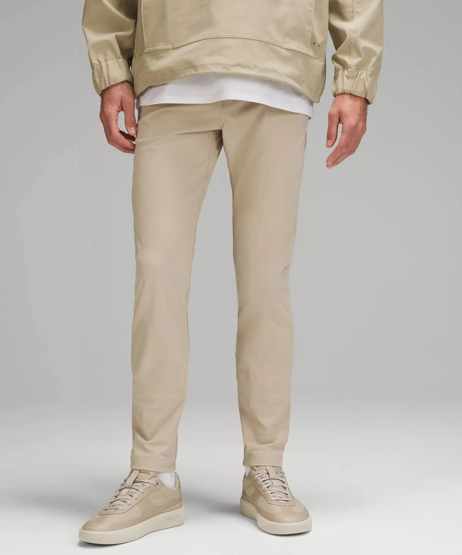 Everyday Performance, Warpstreme™ Fabric Everyday performance Shape retention Quick-drying Four-way stretch Breathable Wrinkle-resistant Feels smooth, falls softly away from body Skinny Fit, 30" Length Close-to-body fit that’s snug around glutes and thighs Our ABC™ technology uses an ergonomic gusset to remove tension from the crotch of our pants Product Features Hand pockets, a phone pocket, and an internal sleeve to stash coins Back pocket with hidden zippered compartment Flip up the cuffs to reveal reflective details Material and care Materials Pocket lining: 100% Recycled polyester Body: 53% Elastomultiester47% Recycled polyester Care Wash with like colours Machine wash cold Do not bleach Tumble dry low Do not iron Do not dry clean Imported