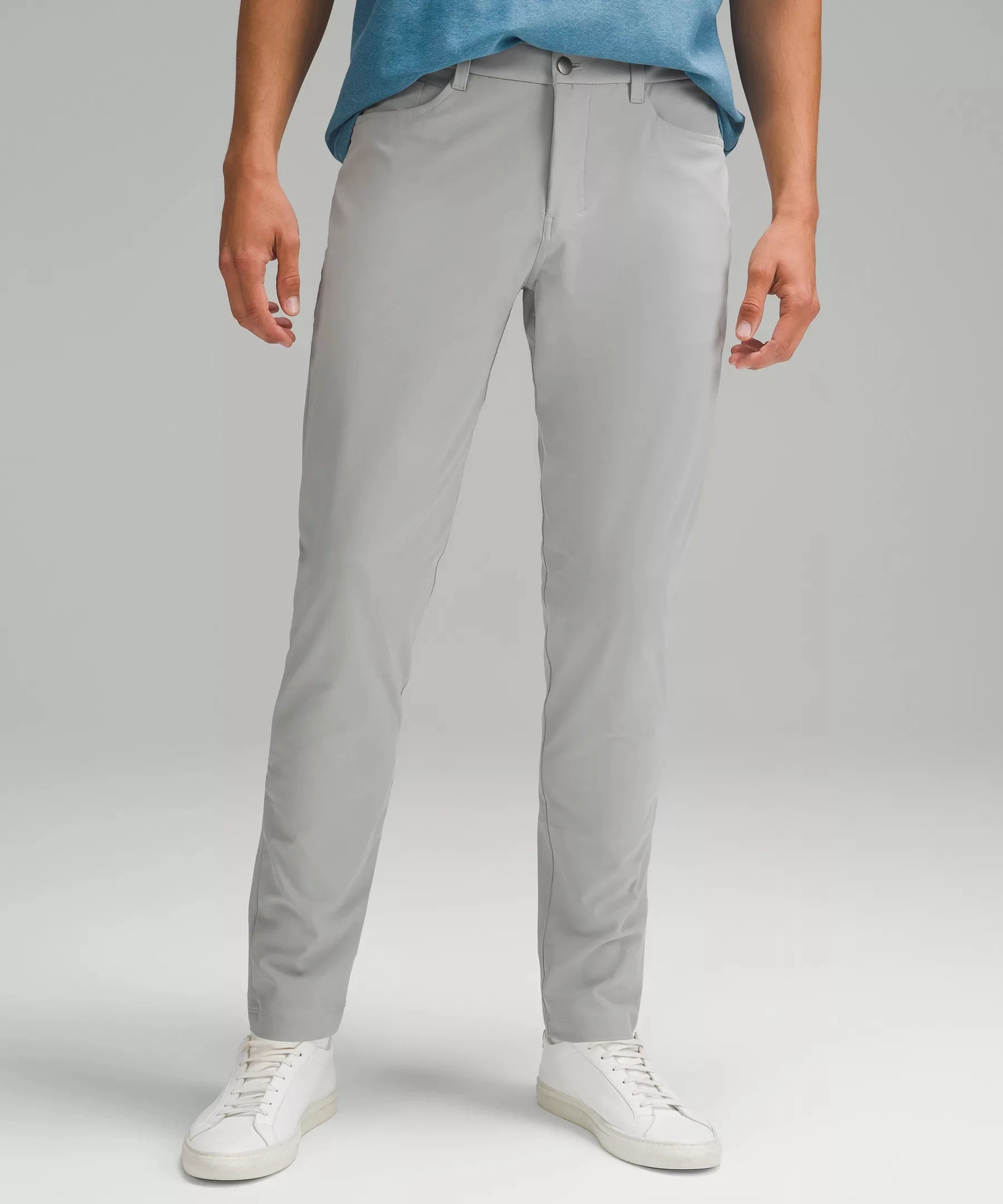 Everyday Performance, Warpstreme™ Fabric Everyday performance Shape retention Quick-drying Four-way stretch Breathable Wrinkle-resistant Feels smooth, falls softly away from body New Slim Fit, 34" Length You asked, we listened. Based on guest feedback, this slim fit still skims your leg from hip to hem, but now has a roomier feel in the glutes and thighs Our ABC™ technology uses an ergonomic gusset to remove tension from the crotch of our pants Product Features Hidden zippered pocket Flip up the cuffs to reveal reflective details Material and care Materials Pocket lining: 100% Recycled polyester Body: 53% Elastomultiester47% Recycled polyester Care Wash with like colours Machine wash cold Do not bleach Tumble dry low Do not iron Do not dry clean Imported