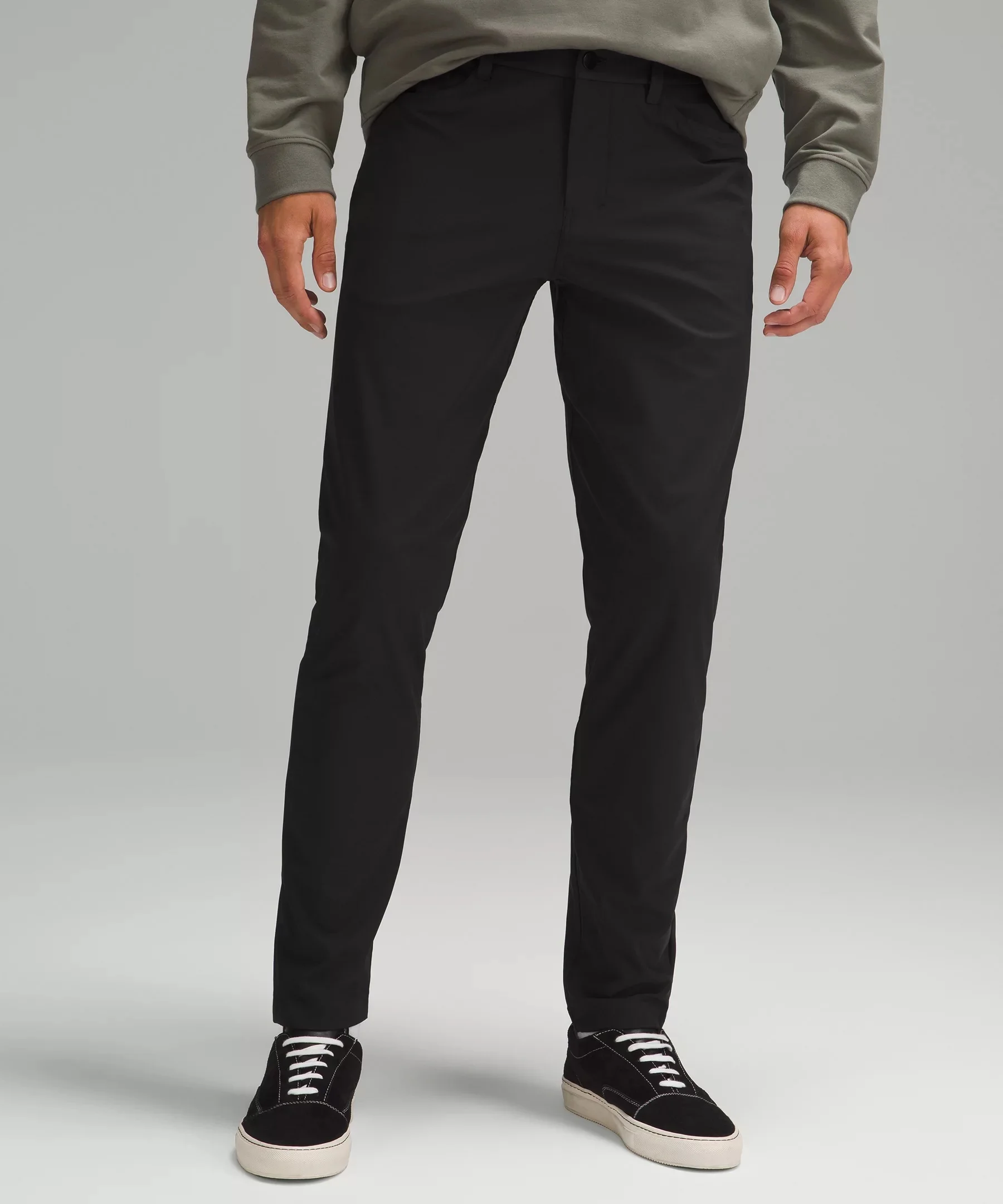 Everyday Performance, Warpstreme™ Fabric Everyday performance Shape retention Quick-drying Four-way stretch Breathable Wrinkle-resistant Feels smooth, falls softly away from body This product contains recycled polyester made from repurposed plastic waste Slim Fit, 34" Length Slim fit that skims glutes and thighs Our ABC™ (Anti-Ball-Crushing) technology uses an ergonomic gusset to remove tension from the crotch of our pants so you can move in comfort Product Features Hand pockets, a phone pocket, and an internal sleeve to stash coins Back pocket with hidden zippered compartment Flip up the cuffs to reveal reflective details Material and care Materials Pocket Lining: 100% Recycled Polyester Body: 53% Elastomultiester47% Recycled Polyester Care Machine Wash Cold Do Not Bleach Tumble Dry Low Do Not Iron Do Not Dry Clean Wash With Like Colors