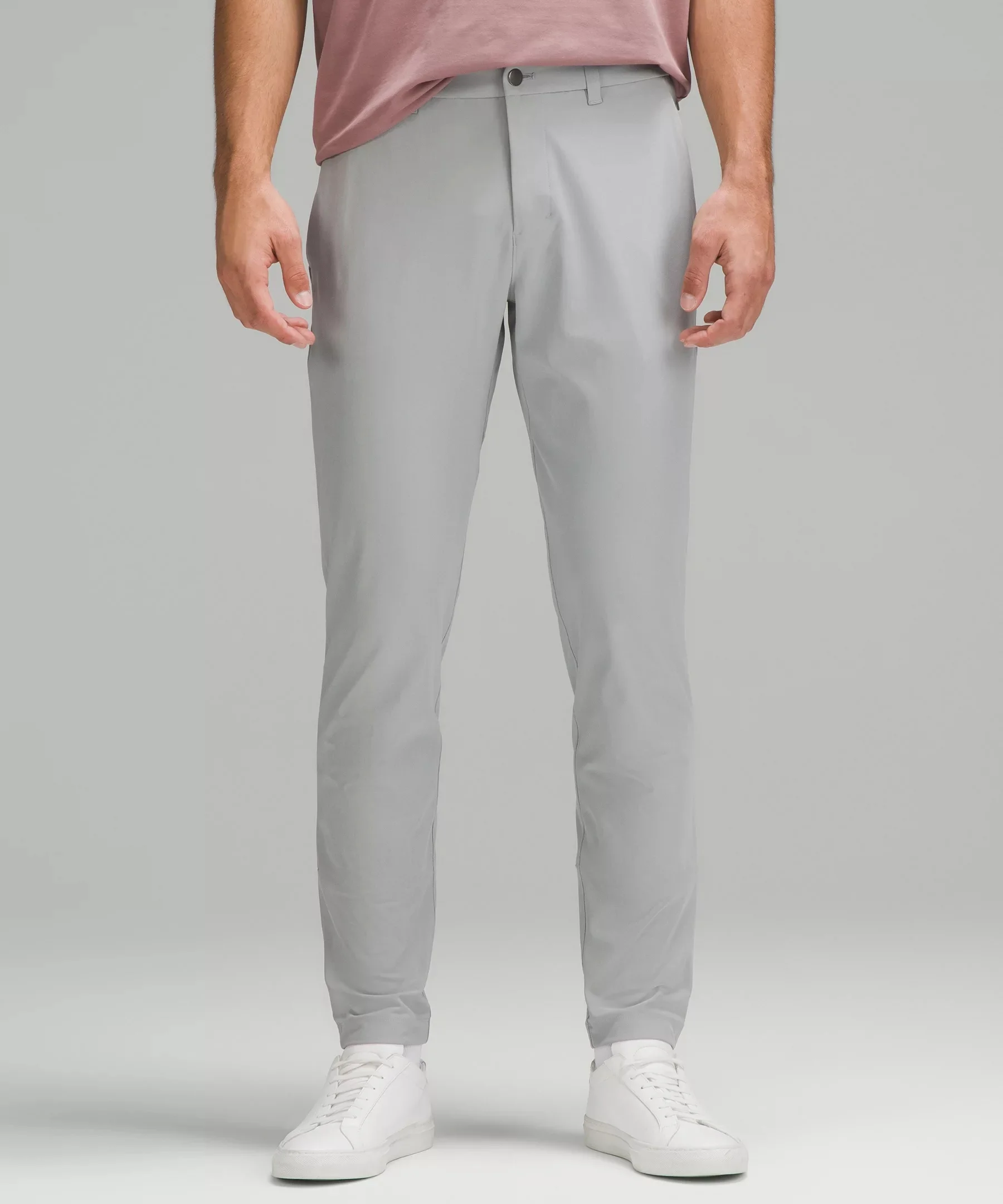 Everyday Performance, Warpstreme™ Fabric Everyday performance Shape retention Quick-drying Four-way stretch Breathable Wrinkle-resistant Feels smooth, falls softly away from body This product contains recycled polyester made from repurposed plastic waste New Slim Fit, 32" Length You asked, we listened. Based on guest feedback, this slim fit still skims your leg from hip to hem, but now has a roomier feel in the glutes and thighs Our ABC™ technology uses an ergonomic gusset to remove tension from the crotch of our pants Product Features Discreet zippered pocket on side seam Back welt pockets with hidden snaps Flip up the cuffs to reveal reflective details Material and care Materials Pocket lining: 100% Recycled polyester Body: 53% Elastomultiester47% Recycled polyester Care Wash with like colours Machine wash cold Do not bleach Tumble dry low Do not iron Do not dry clean Imported