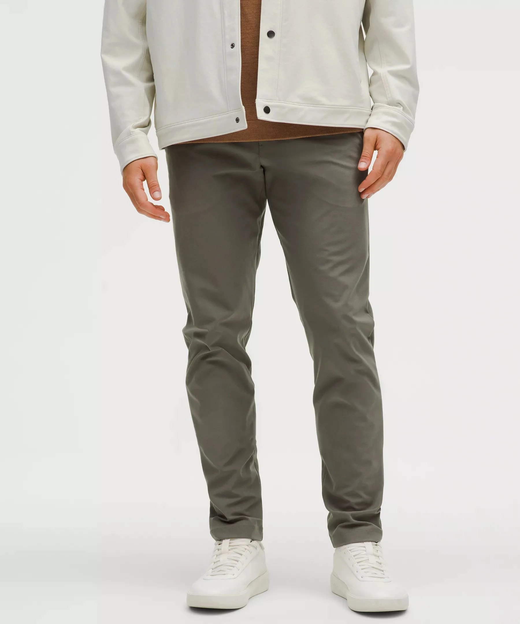 Everyday Performance, Warpstreme™ Fabric Everyday performance Shape retention Quick-drying Four-way stretch Breathable Wrinkle-resistant Feels smooth, falls softly away from body This product contains recycled polyester made from repurposed plastic waste Slim Fit, 34" Length Slim fit that skims glutes and thighs Our ABC™ technology uses an ergonomic gusset to remove tension from the crotch of our pants Product Features Discreet zippered pocket on side seam Back welt pockets with hidden snaps Flip up the cuffs to reveal reflective details Material and care Materials Pocket Lining: 100% Recycled Polyester Body: 53% Elastomultiester47% Recycled Polyester Care Wash with like colours Machine wash cold Do not bleach Tumble dry low Do not iron Do not dry clean Imported