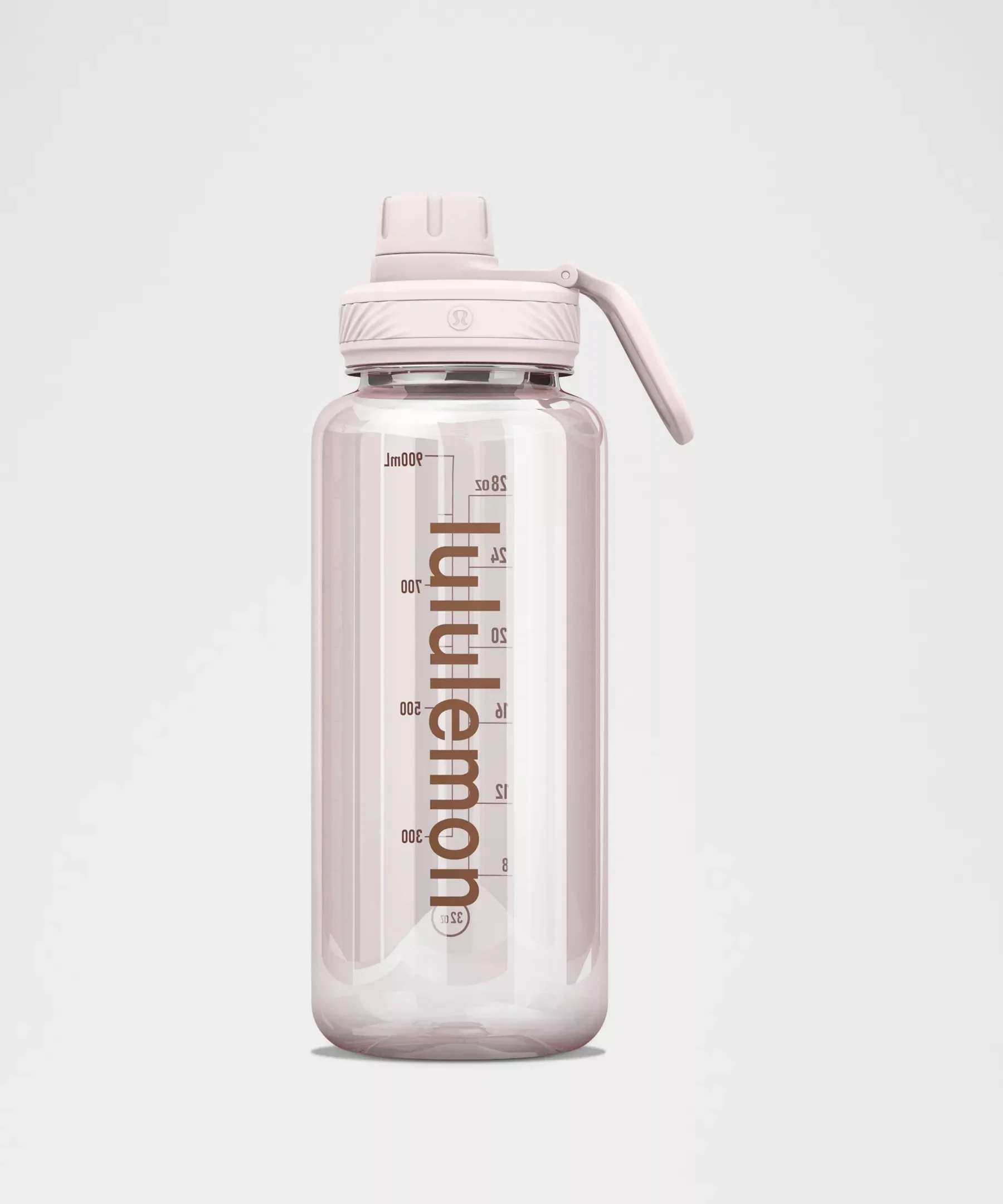Designed for Casual Materials - Made from lightweight, food-contact safe, and easy-to-clean material Dimensions and Volume - Dimensions: 24.5cm x 8.6cm (9.6" x 3.4") - Volume: 32oz (946ml) Product Features - Lid is easy to open and leakproof - Care Instructions: Wash before use. Lid is dishwasher-safe on top rack only. Please hand wash the body of the bottle to preserve the finish. Do not fill with hot water Material and care Materials Band: 100% Silicone - Body: 100% Tritan Copolyester - Top: 100% Polypropylene Care Do Not Use with Hot Water - Handwash Only - Lid - Dishwasher Top Rack - Wash Before Use