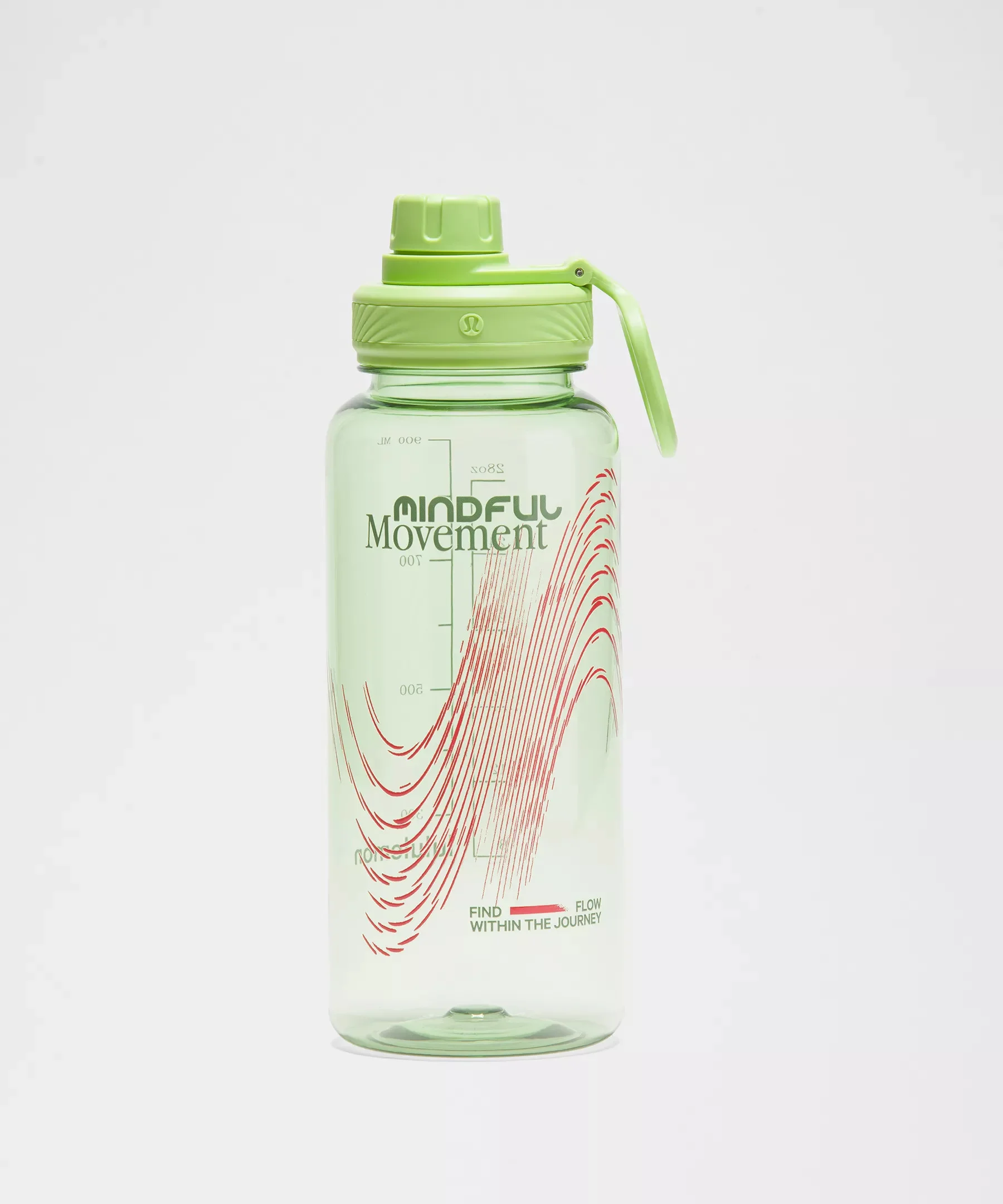Designed for Casual Materials - Made from lightweight, food-contact safe, easy-to-clean material Dimensions and Volume - Dimensions: 24.5cm x 8.6cm (9.6" x 3.4") - Volume: 32oz (946ml) Product Features - Lid is easy to open and leakproof - Care Instructions: Wash before use. Lid is dishwasher-safe on top rack only. Please hand wash the body of the bottle to preserve the finish. Do not fill with hot water Material and care Materials Body: 100% Tritan Copolyester - Band: 100% Silicone - Top: 100% Polypropylene Care Body - Hand Wash Only - Do Not Use with Hot Water - Lid - Dishwasher Top Rack - Wash Before Use