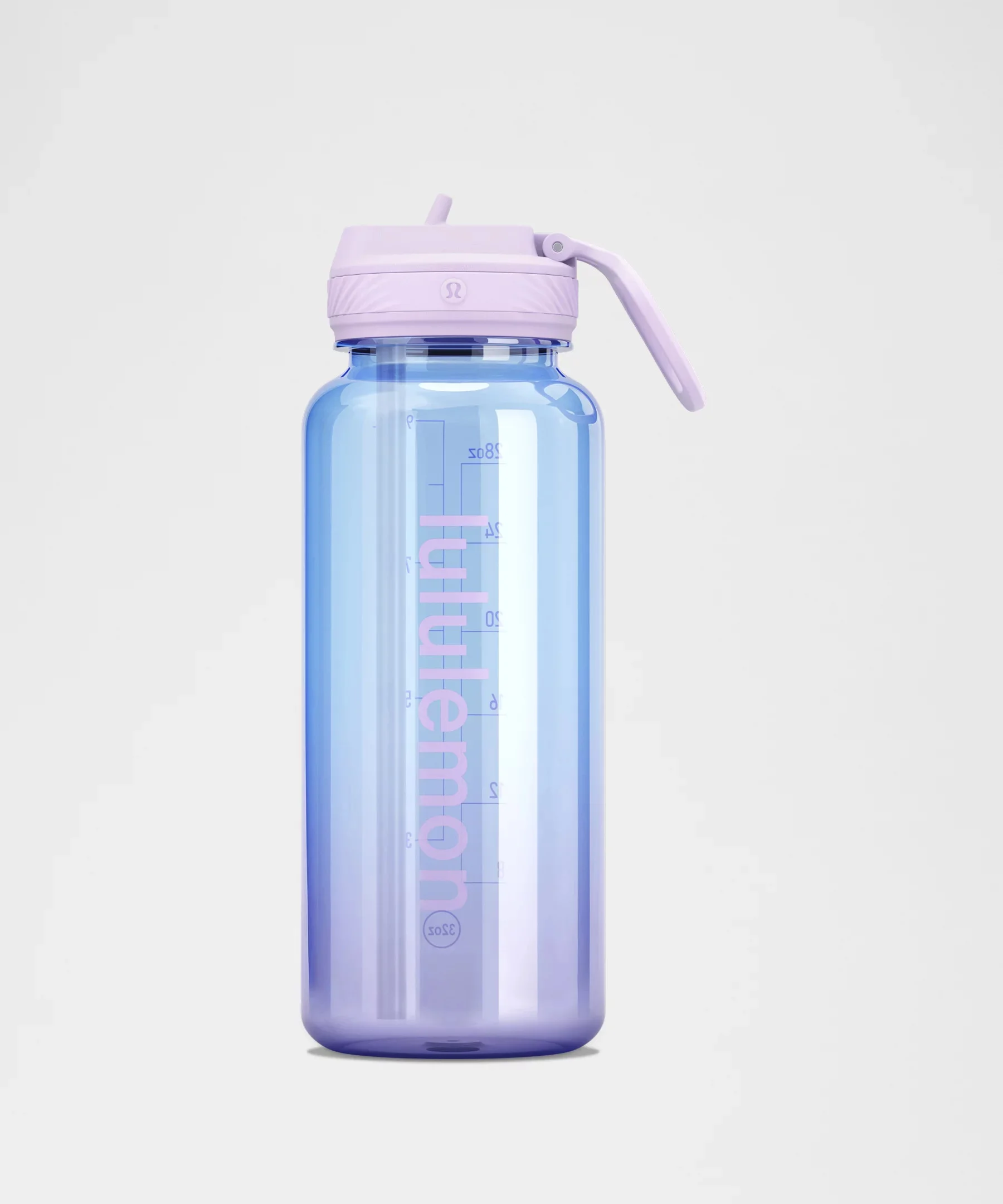 Designed for Casual Materials - Made from lightweight, food-contact safe, easy-to-clean material Dimensions and Volume - Dimensions: 24.5cm x 8.6cm (9.6" x 3.4") - Volume: 32oz (946ml) Product Features - Lid is easy to open and leakproof - Folding straw for easy sipping - Care Instructions: Wash before use. Straw is removable. Lid and straw are dishwasher-safe on top rack. Please hand wash the body of the bottle to preserve the finish. Do not use with hot water Material and care Materials Top: 100% Polypropylene - Band: 100% Silicone - Body: 100% Tritan Copolyester Care Do Not Use with Hot Water - Handwash Only - Lid - Dishwasher Top Rack - Wash Before Use