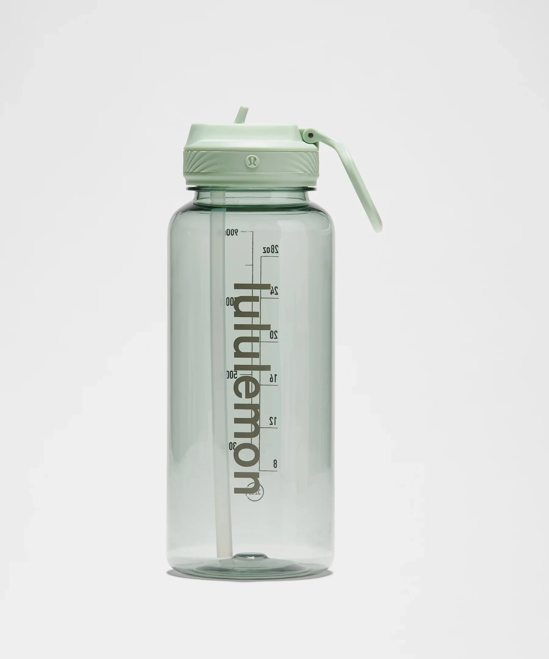 Designed for Casual Materials - Made from lightweight, food-contact safe, easy-to-clean material Dimensions and Volume - Dimensions: 24.5cm x 8.6cm (9.6" x 3.4") - Volume: 32oz (946ml) Product Features - Lid is easy to open and leakproof - Folding straw for easy sipping - Care Instructions: Wash before use. Straw is removable. Lid and straw are dishwasher-safe on top rack. Please hand wash the body of the bottle to preserve the finish. Do not use with hot water Material and care Materials Body: 100% Tritan Copolyester - Band: 100% Silicone - Top: 100% Polypropylene Care Body - Hand Wash Only - Do Not Use with Hot Water - Lid - Dishwasher Top Rack - Wash Before Use