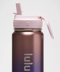 Designed for Casual Dimensions and Volume - Dimensions: 26.4cm x 7.7cm (10.4" x 3") - Volume: 24oz (710ml) Product Features - Folding straw lid for easy sipping - Double-wall design keeps bottle sweat-free - Vacuum insulation keeps drink ice cold - No-flavour transfer keeps contents tasting fresh - Care Instructions: Wash before use. Lid is dishwasher-safe on top rack only. Please hand wash the body of the bottle to preserve the finish. Do not fill with hot water - To deep clean the lid, remove the interior silicone ring and soak in a 2:1 solution of water and vinegar, or cleanse using dish soap. Do not use harsh chemicals like bleach or chlorine - To reassemble, press the ring back into the lid’s open cavity with the tab exposed. Ensure the ring is evenly pressed into the cavity before screwing the lid back on for a secure, leak-proof fit - Due to the nature of the finish, please use care when storing your bottle in bags or backpacks, and around sharp objects such as keys. Hand-wash only as finish may chip or peel in the dishwasher. Natural wear may occur over time Material and care Materials Top: 100% Polypropylene - Body: 100% Steel - Band: 100% Silicone Care Body - Hand Wash Only - Do Not Use with Hot Water - Lid - Dishwasher Top Rack - Wash Before Use