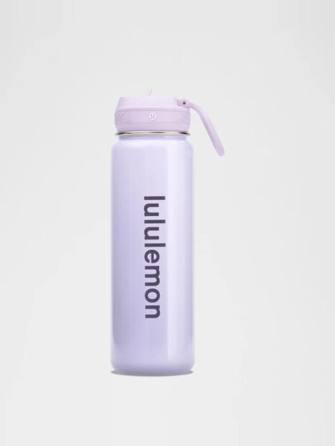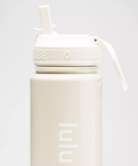 Designed for Casual Dimensions and Volume - Dimensions: 26.4cm x 7.7cm (10.4" x 3") - Volume: 24oz (710ml) Product Features - Folding straw lid for easy sipping - Double-wall design keeps bottle sweat-free - Vacuum insulation keeps drink ice cold - No-flavour transfer keeps contents tasting fresh - Care Instructions: Wash before use. Lid is dishwasher-safe on top rack only. Please hand wash the body of the bottle to preserve the finish. Do not fill with hot water - To deep clean the lid, remove the interior silicone ring and soak in a 2:1 solution of water and vinegar, or cleanse using dish soap. Do not use harsh chemicals like bleach or chlorine - To reassemble, press the ring back into the lid’s open cavity with the tab exposed. Ensure the ring is evenly pressed into the cavity before screwing the lid back on for a secure, leak-proof fit - Due to the nature of the finish, please use care when storing your bottle in bags or backpacks, and around sharp objects such as keys. Hand-wash only as finish may chip or peel in the dishwasher. Natural wear may occur over time Material and care Materials Top: 100% Polypropylene - Band: 100% Silicone - Body: 100% Steel Care Body - Hand Wash Only - Do Not Use with Hot Water - Lid - Dishwasher Top Rack - Wash Before Use